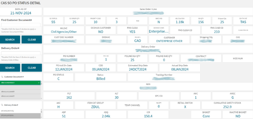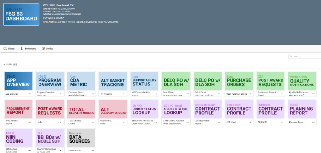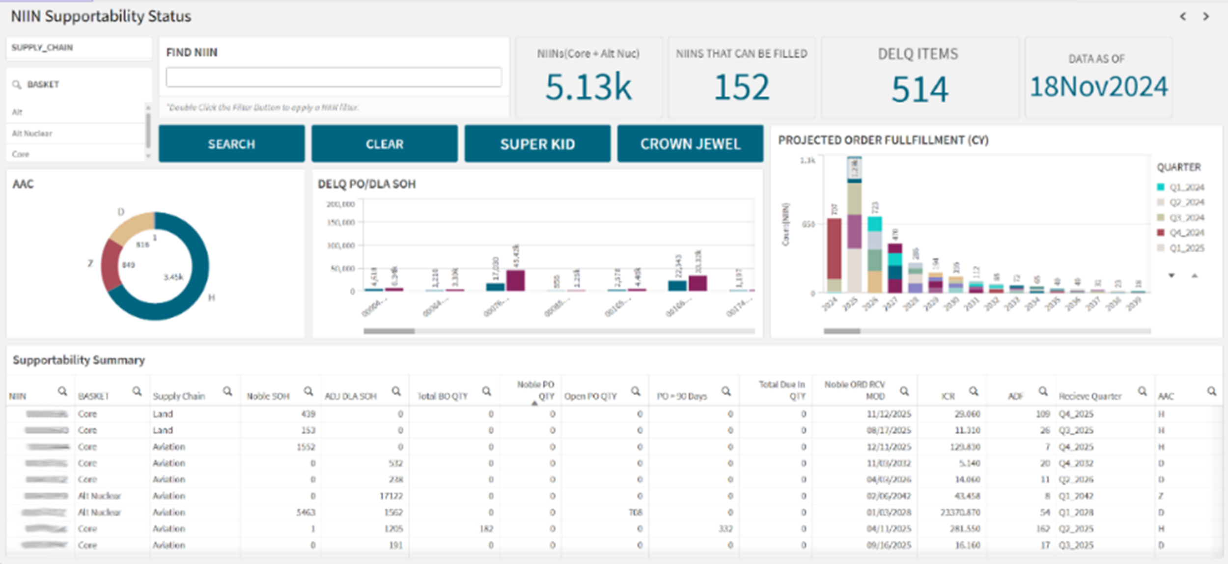 Dashboards and data tools developed by ONYX to improve supply chain visibility and support part availability.