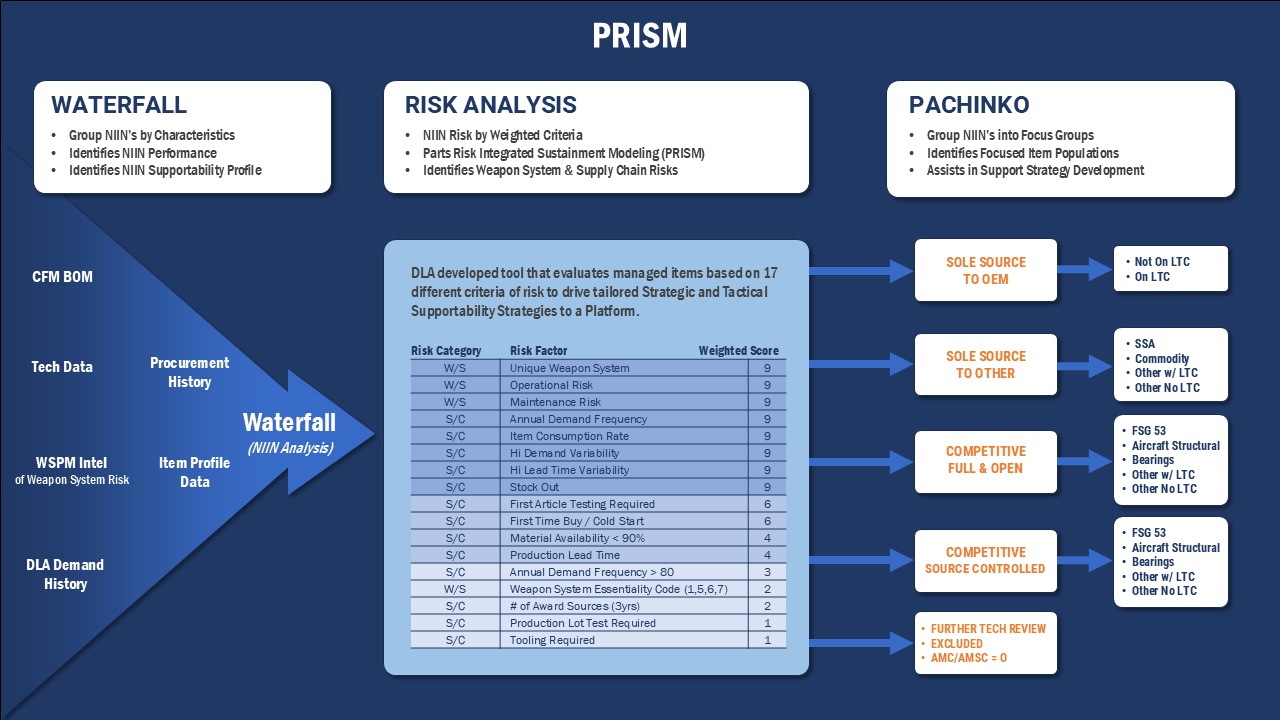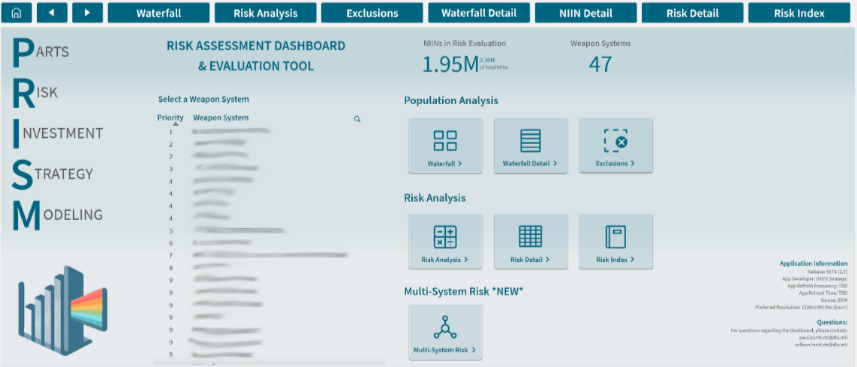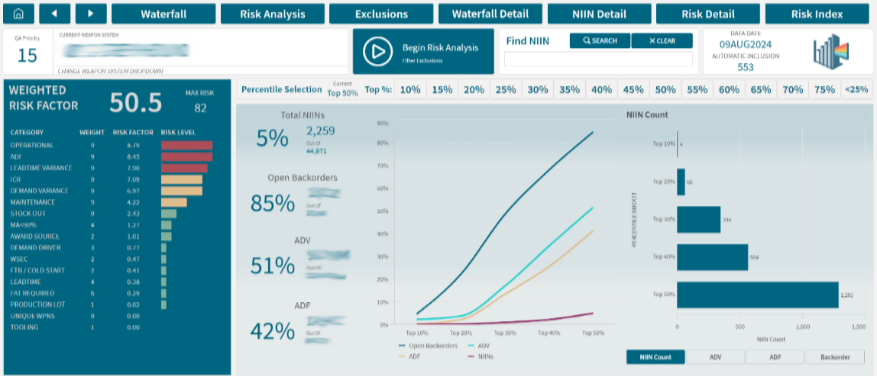 Data tools created to quickly and simply determine key risk factors of each weapon system to determine NIIN supportability.